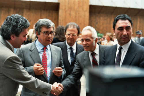Alcune persone del pubblico presente alla presentazione dell'esposizione: "Traci. Arte e cultura nelle terre di Bulgaria", nel cortile di Palazzo Ducale, Venezia