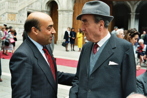 Alcune persone del pubblico presente alla presentazione dell'esposizione: "Traci. Arte e cultura nelle terre di Bulgaria", nel cortile di Palazzo Ducale, Venezia
