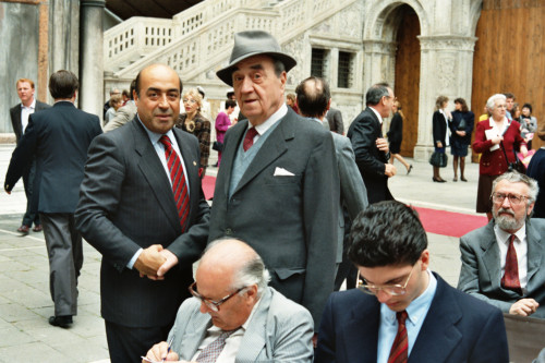 Alcune persone del pubblico presente alla presentazione dell'esposizione: "Traci. Arte e cultura nelle terre di Bulgaria", nel cortile di Palazzo Ducale, Venezia