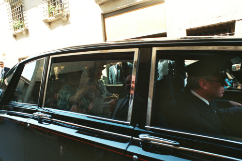 Rientro ad Asolo, la Regina Madre di fronte l'Hotel Villa Cipriani