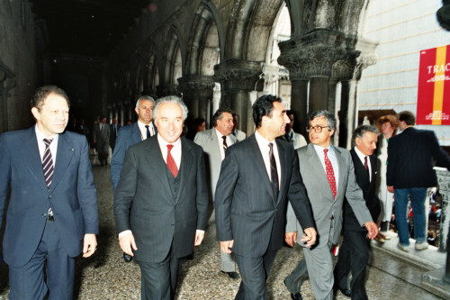 Carlo Bernini e Nero Laroni all'inaugurazione della mostra "Traci. Arte e cultura nelle terre di Bulgaria", nel cortile di Palazzo Ducale, Venezia