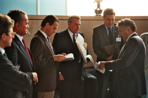 Servizio fotografico ripreso durante l'arrivo di autorità internazionali presso l'aeroporto di Tessera, in occasione della loro partecipazione al summit del Gruppo dei Sette, Venezia nel 1987