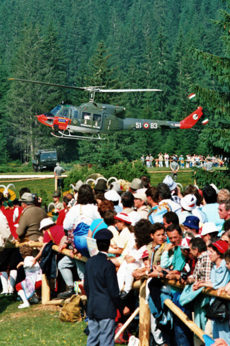 L'atterragio dell'elicottero dell'aeronautica militare con a bordo Papa Giovanni Paolo II presso Col Cumano in occasione del suo incontro con la Diocesi e di Belluno - Feltre