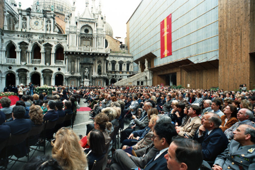 Il pubblico alla presentazione della mostra "Traci. Arte e cultura nelle terre di Bulgaria", nel cortile di Palazzo Ducale, Venezia
