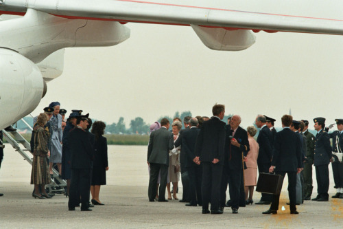Arrivo Regina Madre all'aeroporto San Giuseppe di Treviso, ricevuta - tra gli altri - dall'ambasciatore Lord Bridges, dal Presidente Bernini e dal Prefetto di Treviso Scivoletto