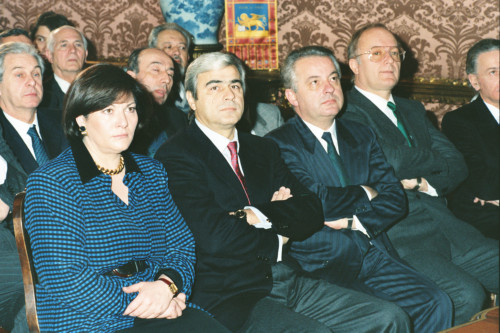 Gli esponenti politici presenti durante dell'intervento di Carlo Bernini Presidente della Regione Veneto in occasione della visita del Presidente della Repubblica Argentina Raùl Ricardo Alfonsin a Venezia nel 1987. Tra questi riconosciamo Amalia Sartori allora presidente dell'aeroporto Marco Polo di Venezia
