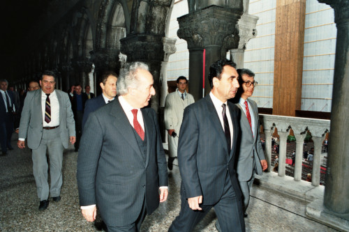 Carlo Bernini e Nero Laroni all'inaugurazione della mostra "Traci. Arte e cultura nelle terre di Bulgaria", nel cortile di Palazzo Ducale, Venezia