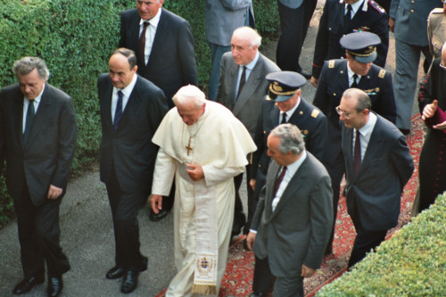 Papa Giovanni Paolo II giunto all'aeroporto di Istrana da Lorenzago di Cadore con l'elicottero dell'aeronautica militare al termine delle vacanze estive passate in Cadore, da qui il Papa sarebbe salito sul jet per Roma