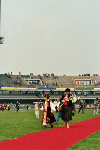 Alcune persone del pubblico riunito in occasione della visita pastorale di Papa Giovanni II allo stadio Benetegodi di Verona