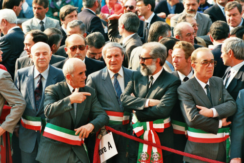 Alcuni sindaci del veronese riuniti in Piazza Brà in occasione della visita pastorale di Papa Giovanni Paolo II