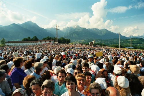 Il pubblico presente all'incontro con Papa Giovanni Paolo II in occasione dell'incontro con i fedeli della Diocesi e di Belluno - Feltre