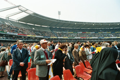 Il pubblico riunito durante la celebrazione aucaristica di Papa Giovanni Paolo II allo stadio Bntegodi di Verona, in visita pastorale