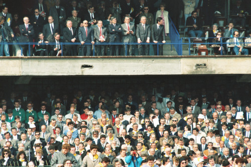 Il pubblico di fedeli riuniti allo Stadio Bentegodi di Verona in occasione della celebrazione aucaristica di Papa Giovanni Paolo II in visita pastorale (tra di loro riconosciamo le autorità civili)