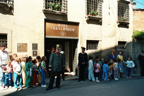 Asolo: gente festante fuori l'Hotel Villa Cipriani, residenza della Regina Madre