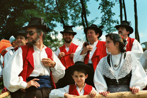 Gruppo folkloristico locale in attesa del saluto di Papa Giovanni Paolo II durante l'incontro con la Diocesi e di Belluno - Feltre