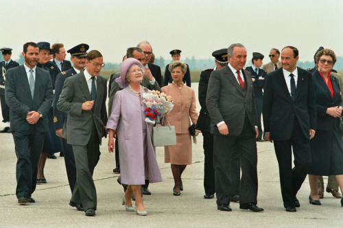 Arrivo Regina Madre all'aeroporto San Giuseppe di Treviso, ricevuta - tra gli altri - dall'ambasciatore Lord Bridges, dal Presidente Bernini e dal Prefetto di Treviso Scivoletto