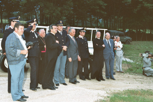 Il gruppo di autorità presenti alla partenza di Papa Giovanni Paolo II a Lorenzago di Cadore in occasione delle sue vacanza estive; tra di loro il Vescovo Ducoli Maffeo e Carlo Bernini Presidente della Regione Veneto