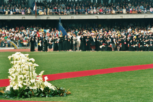 Il pubblico riunito presso lo stadio Bentegodi di Verona in occasione della celebrazione eucaristica di Papa Giovanni Paolo II in visita pastorale