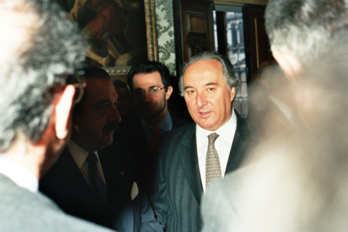 Il Presidente della Repubblica Argentina Raùl Ricardo Alfonsin (a sinistra)in visita a Venezia nel 1987, accompagnato da Carlo Bernini (al centro)Presidente della Regione Veneto