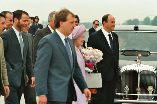 Arrivo Regina Madre all'aeroporto San Giuseppe di Treviso, ricevuta - tra gli altri - dall'ambasciatore Lord Bridges, dal Presidente Bernini e dal Prefetto di Treviso Scivoletto