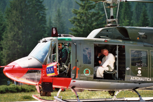Papa Giovanni Paolo II prima della partenza in elicottero da Pramarino in Val Visdende
