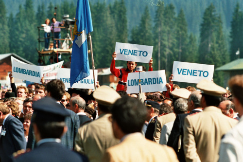 Fedeli a Pramarino in Val Visdende prima della Santa Messa del Papa Giovanni Paolo II