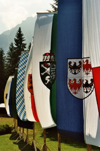 Bandiere presso il Col Cumano riprese in occasione dell'arrivo di Papa Giovanni Paolo II per l'incontro con la Diocesi di Belluno - Feltre