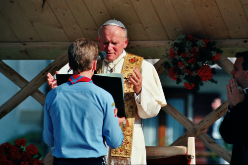 Papa Karol Wojtyla durante una preghiera in occasione dell'incontro con la diocesi di Belluno - Feltre a Col Cumano