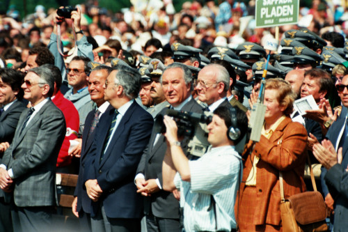Carlo Bernini tra i fedeli e i giornalisti giunti presso Col Cumano in occasione della visita di Papa Giovanni Paolo II