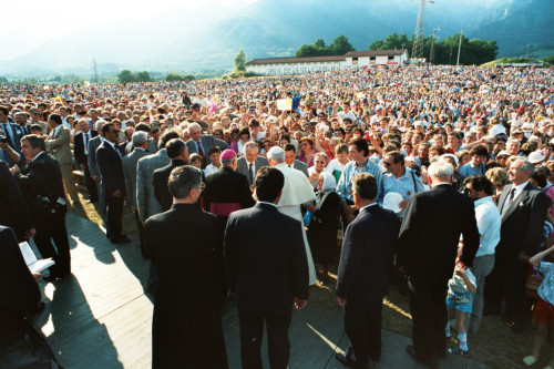 Papa Giovanni Paolo II tra il pubblico in occasione del suo incontro con i fedeli della Diocesi e di Belluno - Feltre