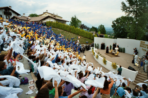 Il pubblico presente durante l'incontro tra Papa Giovanni Paolo II e i fedeli della Diocesi e di Belluno - Feltre al Centro Papa Luciani