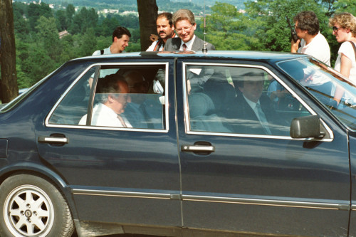 Carlo Bernini, Presidente della Regione Veneto, si allontana in auto dopo avere partecipato all'incontro di Papa Giovanni Paolo II con la Diocesi e di Belluno - Feltre