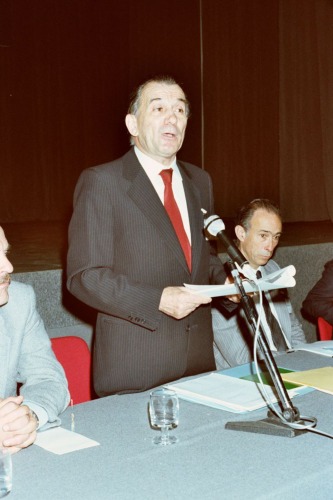 Anselmo Boldrin, Assessore Regionale all'Emigrazione e alla sua sinistra Vincenzo Barcelloni, Presidente Consulta Regionale