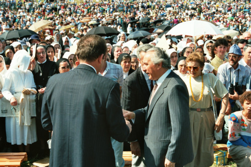 Carlo Bernini parla con alcune persone al termine dell'incontro di Papa Giovanni Paolo II con la Diocesi e di Belluno - Feltre