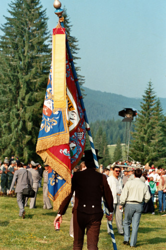Un componente del gruppo folkloristico si prepara all'arrivo di Papa Giovanni Paolo II in occasione del suo incontro con la Diocesi e di Belluno - Feltre