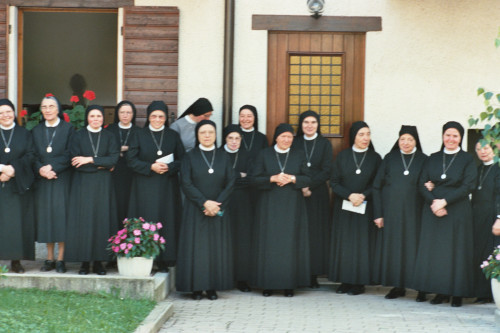 Un gruppo di suore presente all'arrivo di Papa Giovanni Paolo II a Lorenzago di Cadore per le vacanze estive