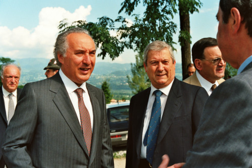 Carlo Bernini, Presidente della Regione Veneto, mentre saluta alcuni dei partecipanti all'incontro di Papa Giovanni Paolo II con la Diocesi e di Belluno - Feltre