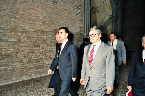 Carlo Bernini e Nero Laroni all'inaugurazione della mostra "Traci. Arte e cultura nelle terre di Bulgaria", nel cortile di Palazzo Ducale, Venezia