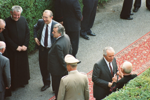 Carlo Bernini in attessa dell'arrivo di Papa Giovanni Paolo II da Lorenzago di Cadore all'Aeroporto Militare di Treviso in località Istrana, per la sua partenza per Roma a seguito delle vacanze estive.