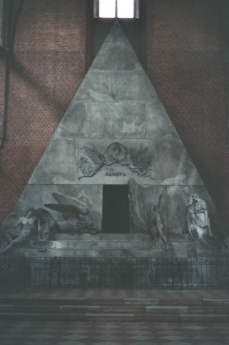 Monumento funebre ad Antonio Canova nella Basilica di Santa Maria Gloriosa dei Frari a Venezia, fotografato durante la visita del Presidente della Repubblica Argentina Raùl Ricardo Alfonsin nel 1987