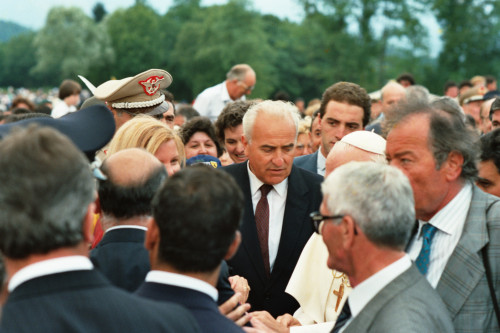Papa Giovanni Paolo II tra il pubblico in occasione del suo incontro con i fedeli della Diocesi e di Belluno - Feltre