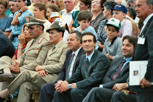 Umberto Carraro e alcune altre autorità tra il pubblico in occasione dell'incontro tra Papa Giovanni Paolo II e i fedeli della Diocesi e di Belluno - Feltre