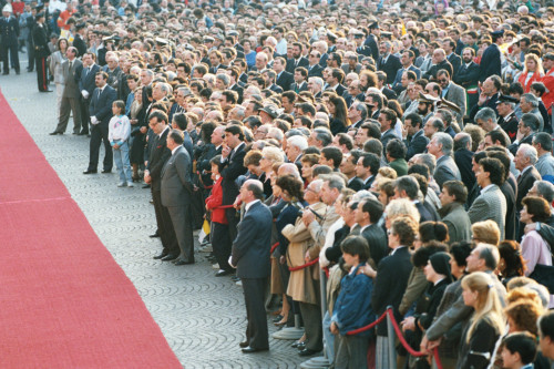 Il pubblico di fedeli raccolti in Piazza Brà a Verona in occasione della visita di Papa Giovanni Paolo II
