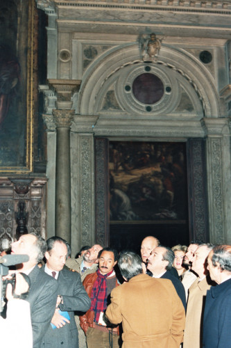 Il Presidente della Repubblica Argentina (il primo da destra)Raùl Ricardo Alfonsin a Venezia nel 1987, in visita la Basilica di Santa Maria Gloriosa dei Frari