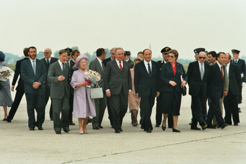 Arrivo Regina Madre all'aeroporto San Giuseppe di Treviso, ricevuta - tra gli altri - dall'ambasciatore Lord Bridges, dal Presidente Bernini e dal Prefetto di Treviso Scivoletto