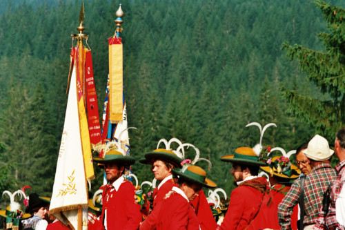 Alcuni membri di un gruppo folkloristico alpino presente in occasione dell'incontro presso Col Cumano di Papa Giovanni Paolo II con la Diocesi e di Belluno - Feltre