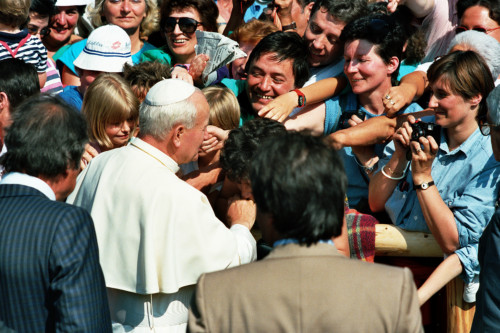 L'arrivo di Papa Giovanni Paolo II e il suo saluto al pubblico di fedeli presso Col Cumano in occasione del suo incontro con la Diocesi e di Belluno - Feltre