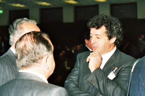 Carlo Bernini, Presidente della Regione Veneto, tra gli imprenditori riuniti presso l'Agricenter in attesa dell'arrivo di Giovanni Paolo II in visita a Verona