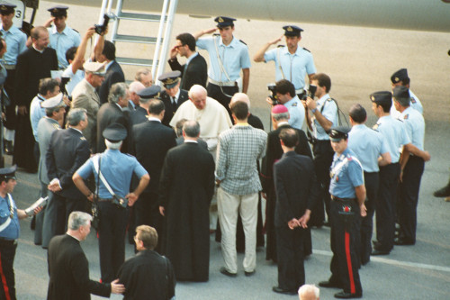 Papa Giovanni Paolo II all'imbarco del jet diretto a Roma al termine delle sue vacanze estive trascorse in Cadore