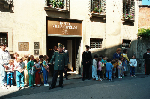 Asolo: gente festante fuori l'Hotel Villa Cipriani, residenza della Regina Madre